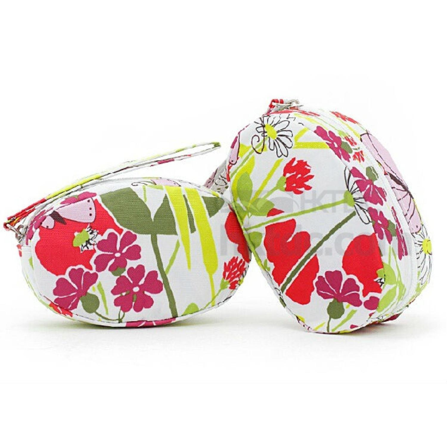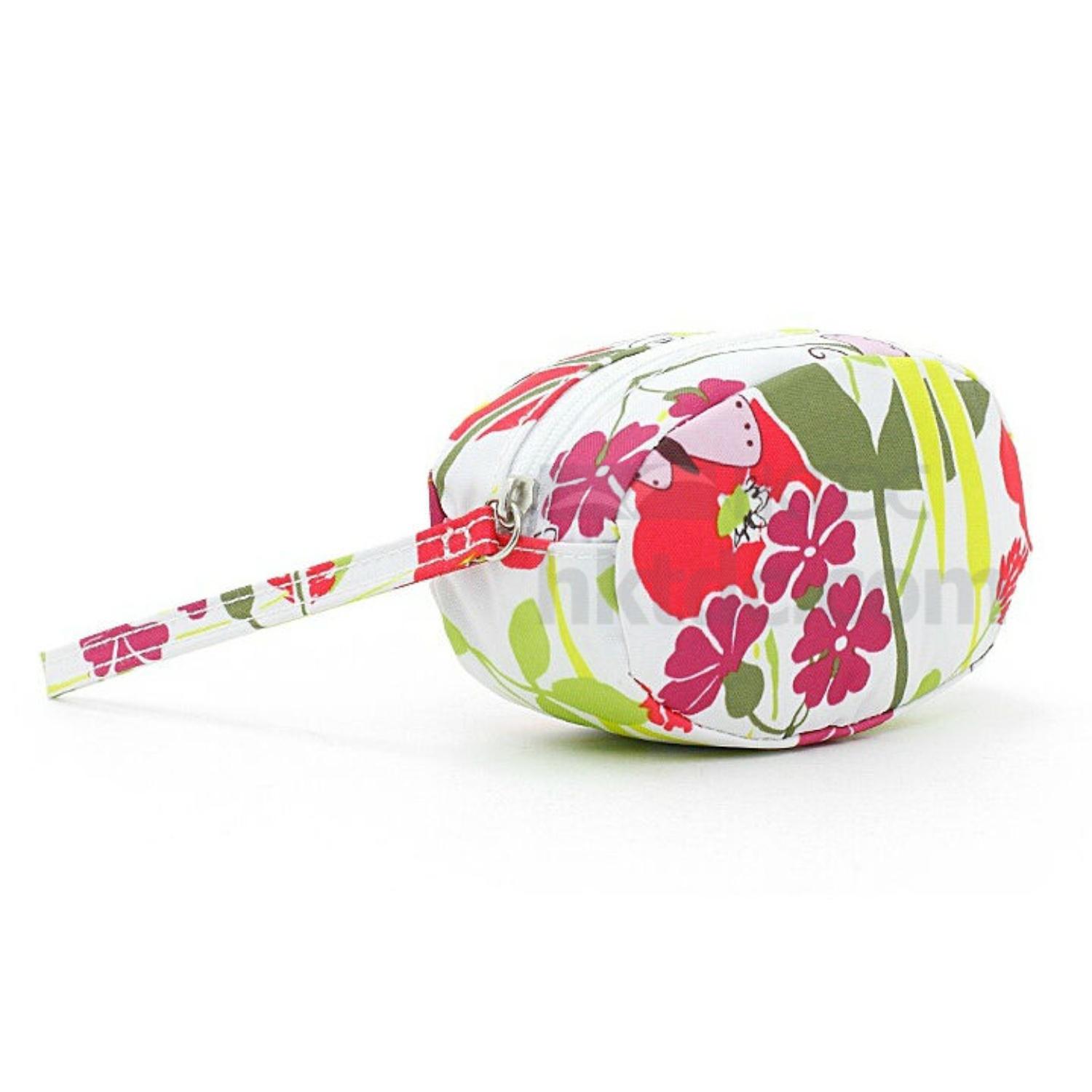 travel cosmetic bag displayed is made of canvas with screen printed design in casual feel