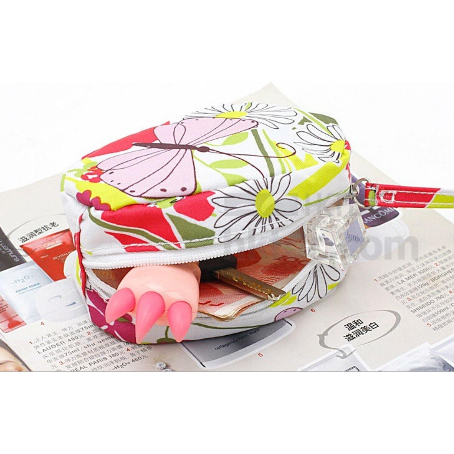 1.Material: 1C canvas material+silk printing flower pattern on both sides+PU leather zipper pull+stitching closed edge