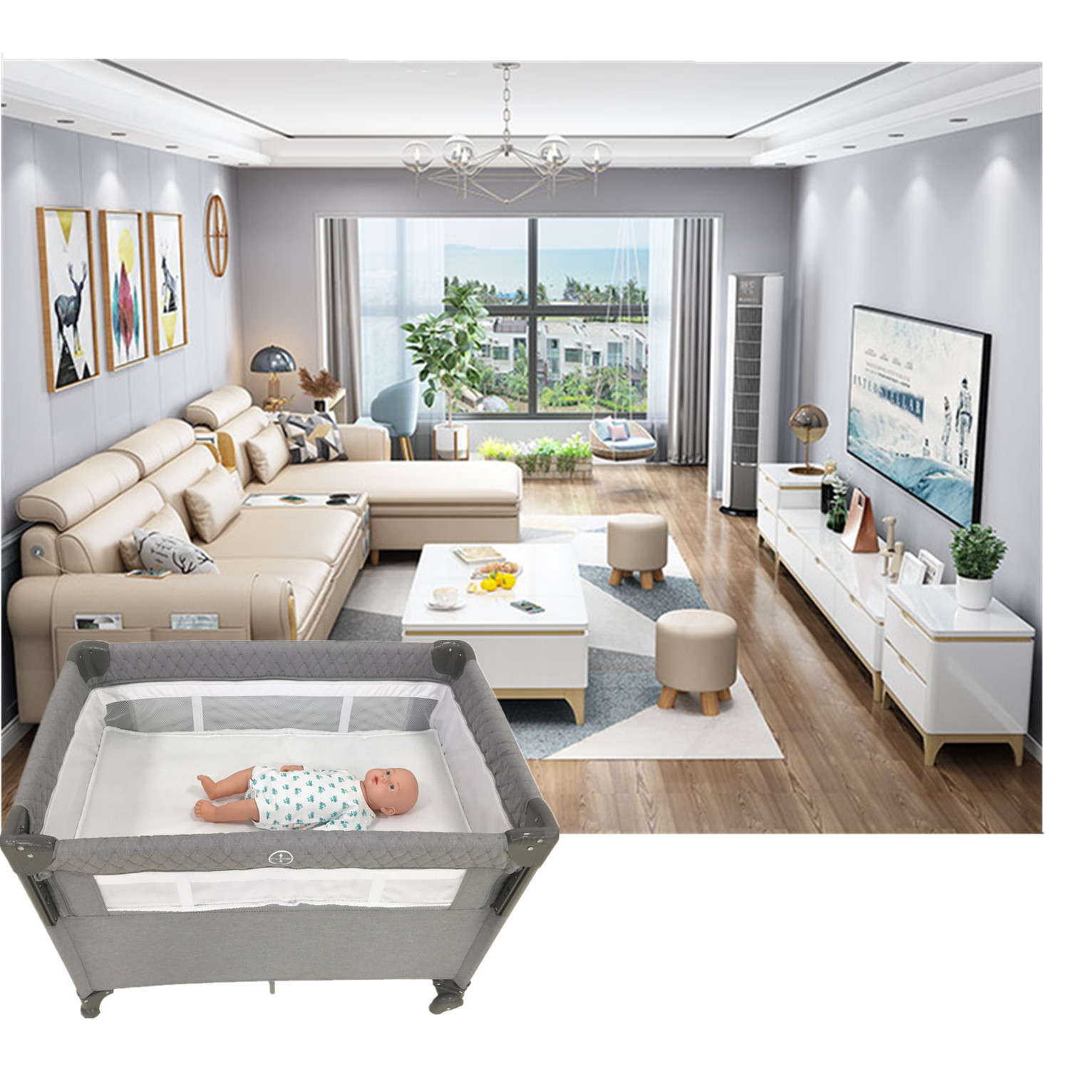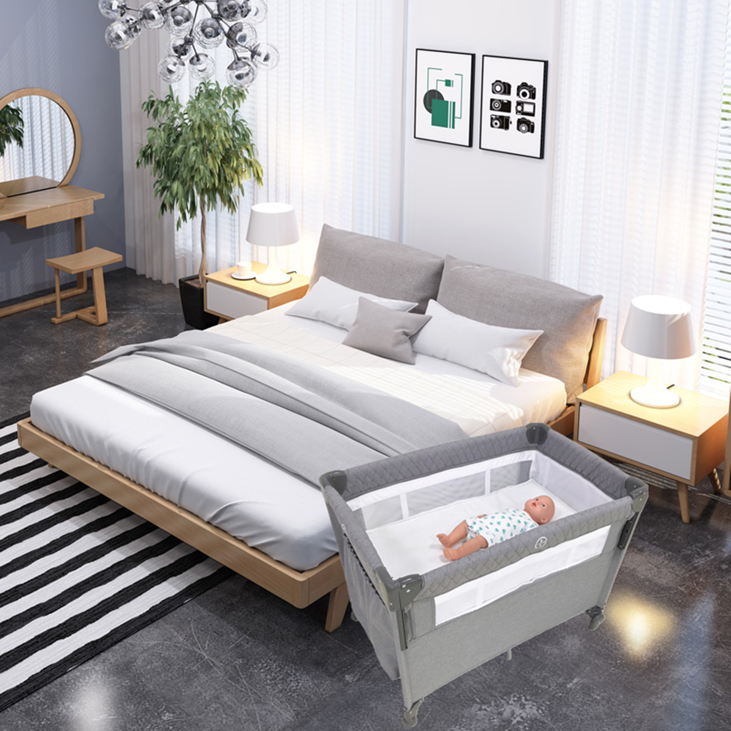 Provide a safe and comfortable place for babies to play and sleep in with this baby playpen. It has a foldable structure and can be easily folded for carrying anywhere you want. This baby playpen an adjustable panel for bedside use and is equipped with wheels to ensure good mobility.