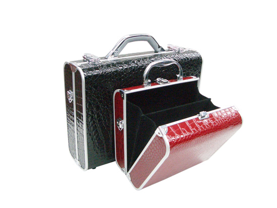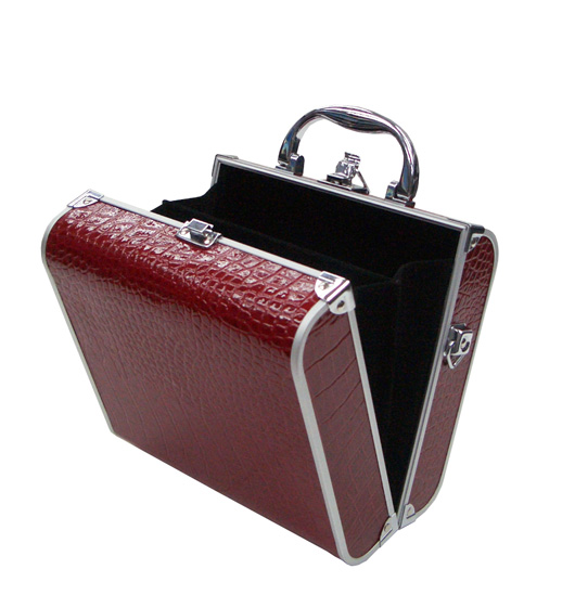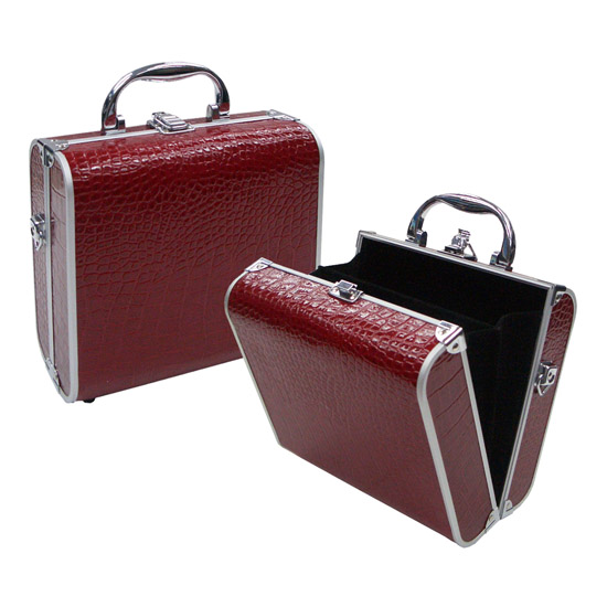 • Material: aluminum (protective corners), PVC (crocodile pattern) Stylish luggage case with eye-catching surface finishing in red/black.