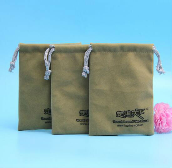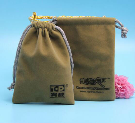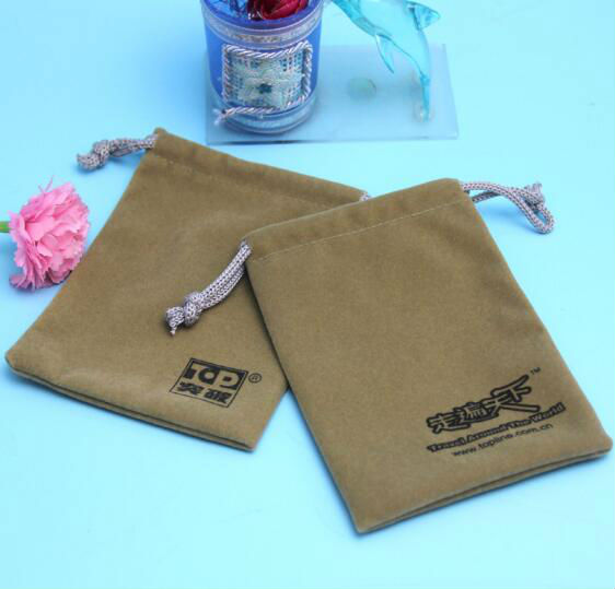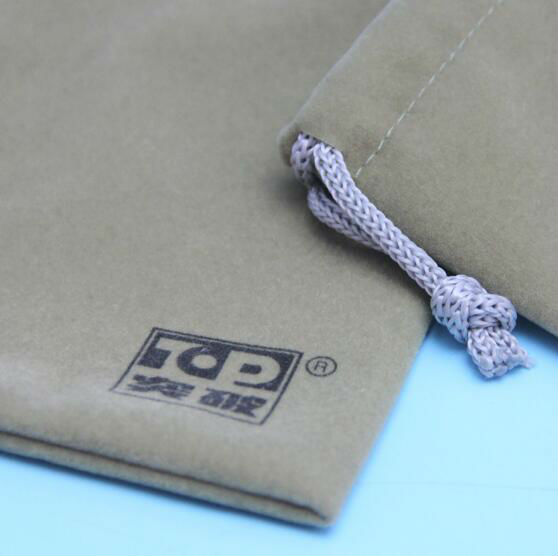 1.Material: 1C velvet material + silk printing logo + drawstring