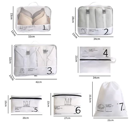Ideal for travelers, this seven-piece set helps keep your luggage organized and clutter-free. Its versatile and durable design makes it a must-have for any trip, ensuring you can easily find and access your items whenever you need them.