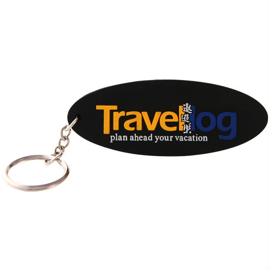 Featuring a silver-tone split ring, this oval PVC keychain allows companies to print their logos or other promotional materials on the key charm. It is ideal for advertising and promotional use.