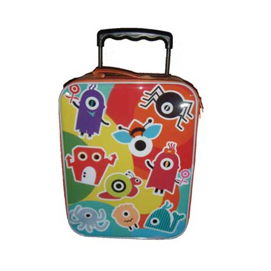Shown is a travel luggage with colorful graphics for a unique touch of style. The luggage comes with a pull-handle for easy carrying. The generous capacity allows you to bring everything needed on a trip.