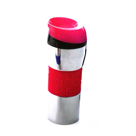 This travel mug is made of top-grade stainless steel for enhanced structural strength. It comes with a double-wall design for keeping your drink hot over a long period of time. This mug comes with a silicon cap.