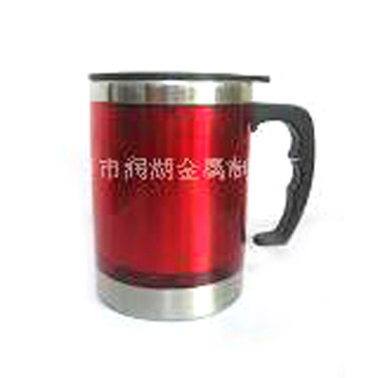 This travel mug features a modest, practical design with a lid. It is suitable for use in outdoor activities such as camping. This lightweight and durable mug is also ideal for everyday use.