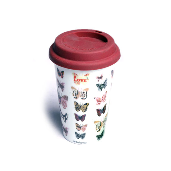 This travel mug features butterfly patterns in assorted colors. It features ample space for holding more beverages. Made of quality porcelain, this mug boasts a long service life.