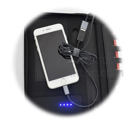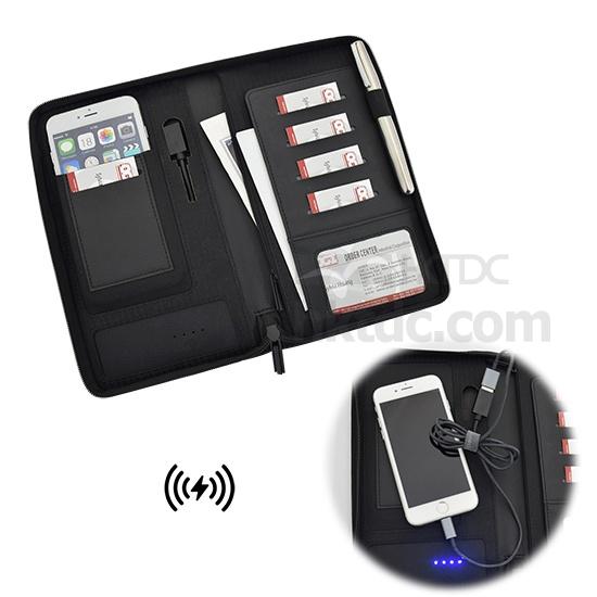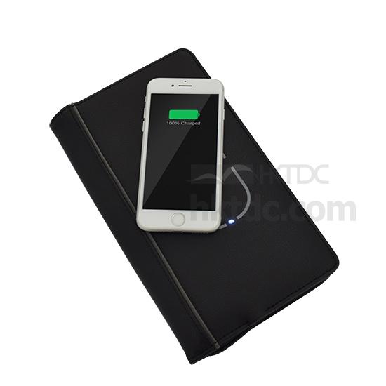 • Features an integrated 4000 mAh built-in power bank for power the wireless charging pad with elastic mobile holder on front cover
