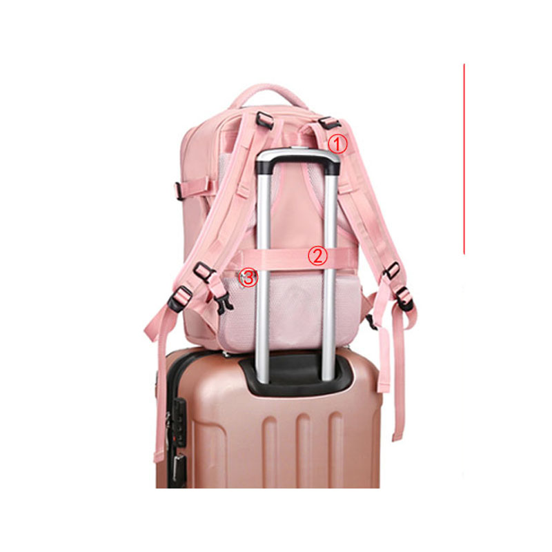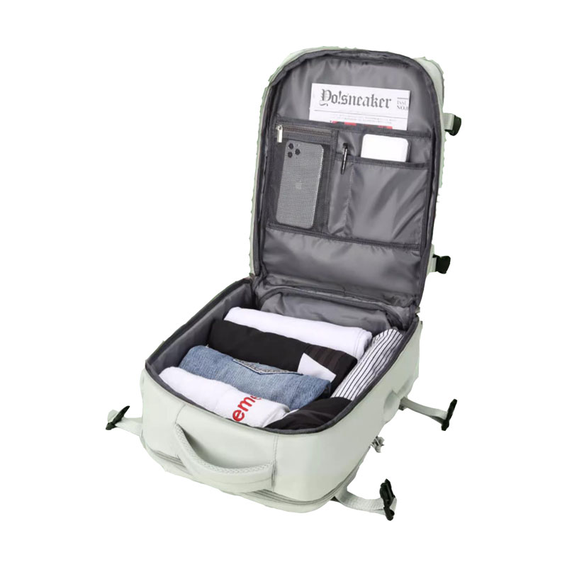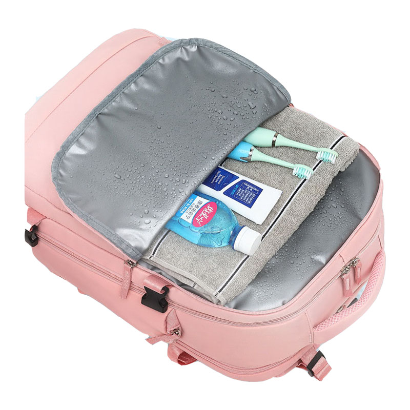 • Organized Compartment Storage:Multi-compartment layout keeps your belongings neatly arranged. The main compartment holds clothes and daily essentials, while front and side pockets store small items separately. A wet-dry separation pocket keeps toiletries secure and dry.
