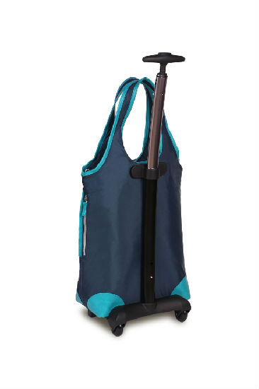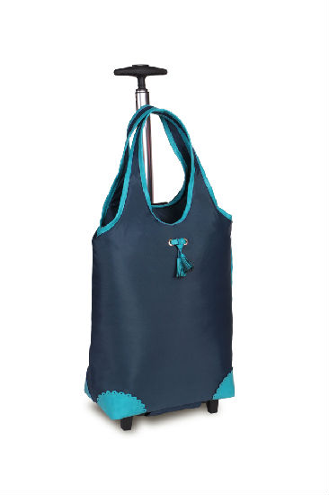 This is for traveling and shopping bag that is made of waterproof nylon, PU trimming, waterproof PVC lining fabric. It is detachable for easy cleaning and storage. The aluminum tube trolley ensures a durable and lightweight structure.