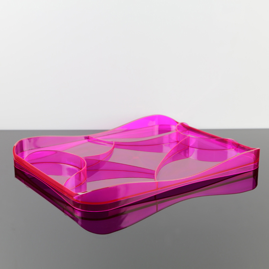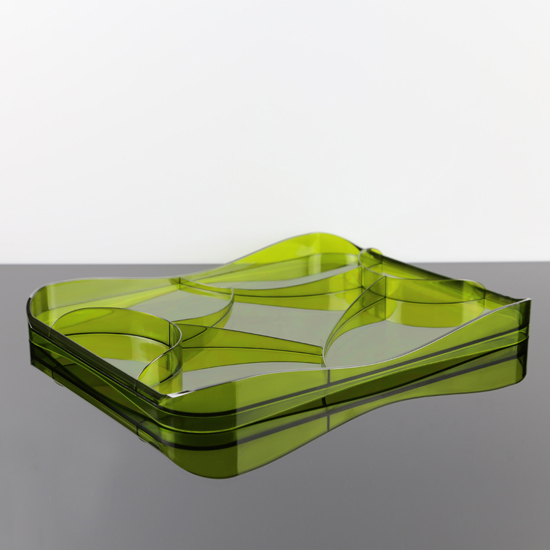This is a unique and innovative designer tray for different purposes, The shape is so distinctive while the translucent colors is the eye catching element. And the main focus is the undulated walls which looks like the pattern of tracery, and that is why the tray is named Tracery.