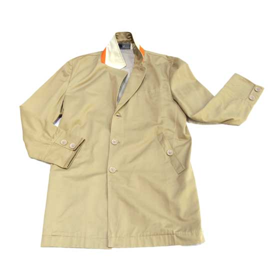 This is a men's trench coat in allover khaki. It boasts an elegant and trendy design. The high-quality cotton material promises a soft and comfort texture.