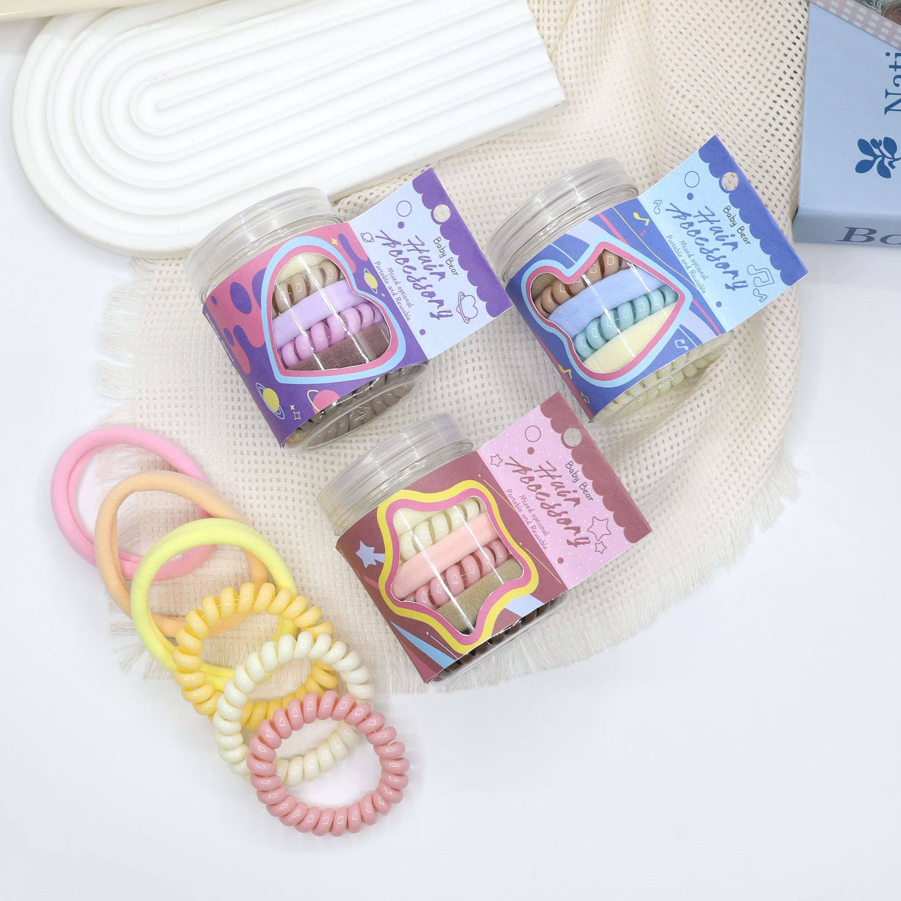Keep your hair ties organized and within reach with this convenient 6-piece combo pack, featuring 3 spiral (towel) hair coils and 3 telephone cord hair rings—all stored in a compact, reusable travel tub. Perfect for on-the-go styling!