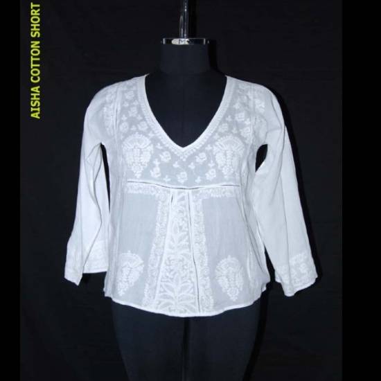 The lovely blouse features unique cropped length and tribal embroidery patterns that give an elegant accent. This deep V-neck top also comes with flared mid-sleeves and a round bottom hem. The durable cotton material brings you comfort and breathability in warm days.