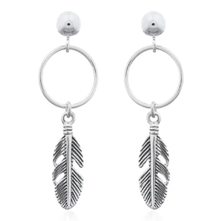 Tribal Feather Hanging 925 Silver Stud Earrings