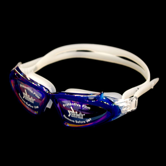 These triflex goggles boast quick-adjustable straps and rim to fit your face contour. The PC lenses provide UV protection and an anti-fog function. The sharp blue-and-white design lets you look smart in swimming pools.