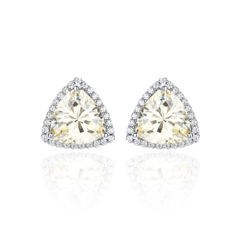 Trillion Canary And Round White Cubic Zircon Rhodium Silver Earring