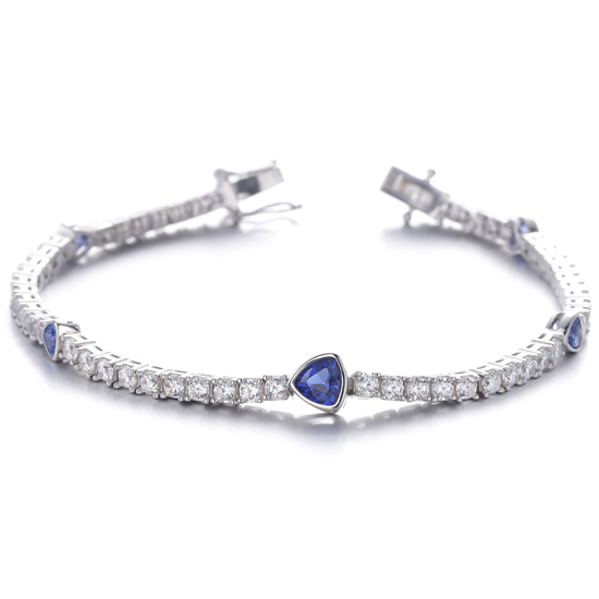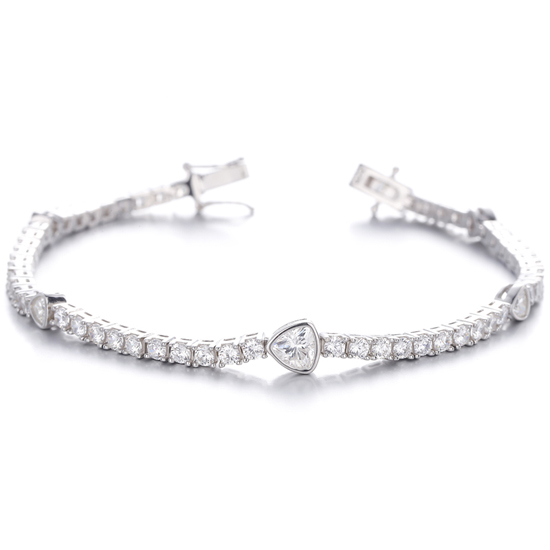 Trillion Diamond G Color And Round White Cubic Zircon Rhodium Silver Bracelet