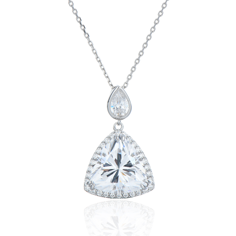 Trillion Tanzanite And White Cubic Zircon Rhodium Silver Pendant
