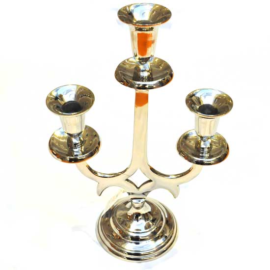 This triple-candle stand comes with three candle holders in circular shapes with bell-shaped tops. The base is sophisticated with the decorative rims. The glossy finish produces excellent reflective candle light.