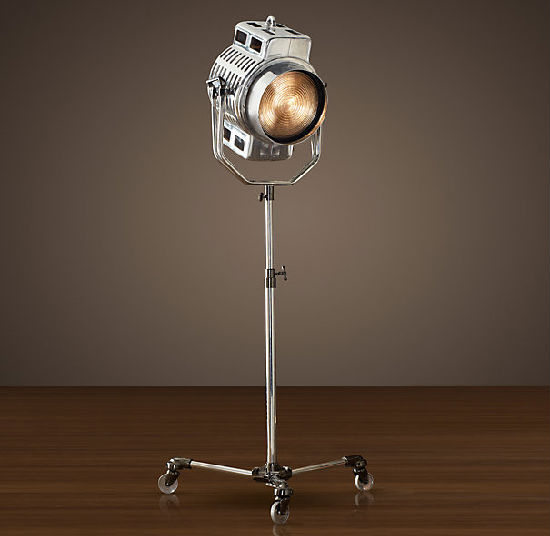 Industrial in mien and function, our exacting reproduction of a 1940s Hollywood studio light is as solidly built and maneuverable as its predecessors. Originally designed to illuminate the famous faces of film, the height adjusts manually from 47" to 67". Crafted of solid cast aluminum and steel, it's a classic of the genre.