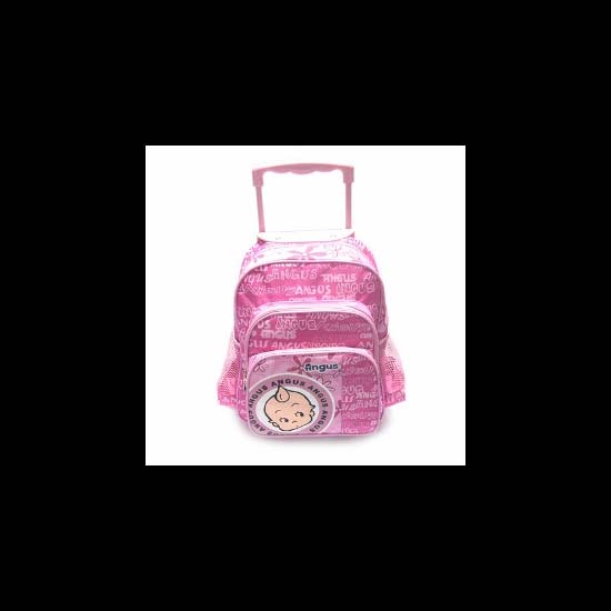 • Pink in color featuring a baby called Angus and decorated with patterns of words and flowers