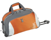Shown here is a trolley travel bag. Constructed of durable outer fabric, it comes with a large zipper compartment and twin grab handles to the side. The telescopic handle and the double trolley wheels to the base allow for easy wheeling and transport. With its large storage capacity, this trolley holdall will make a great alternative to traditional suitcase and is ideal for both occasional travellers and frequent flyers.