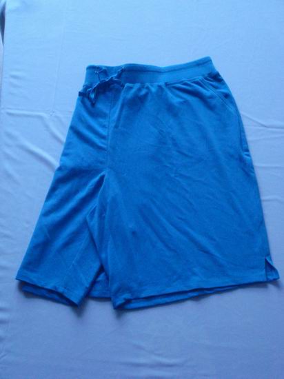 The light blue shorts feature an elastic waist with interior draw cord for added flexibility and side-slit pockets. It is made of soft and smooth materials for everyday comfort.