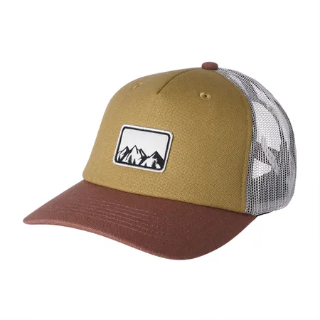 This trucker cap features five panels curved peak with a woven embroidered mountain logo badge on the front panel. It features adjustable closure by snapping the button on the back. With a breathable mesh back, it is suitable for outdoor activities and exercise.