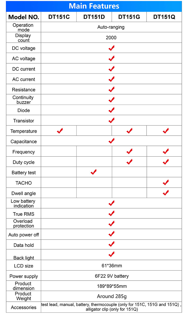 True RMS Intelligent Digital Multimeter DT151D NEW Item