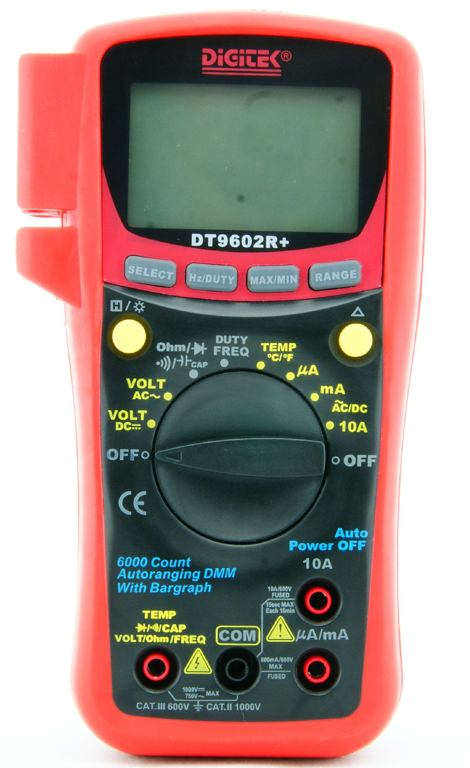 • DC Current: 600/6000µA ±1.5%, 60/600mA ±1.5%, 6A/10A ±2.0%