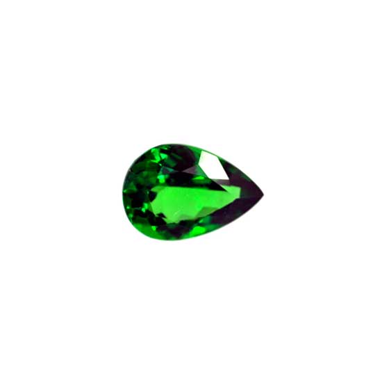 This pear-cut tsavorite stone showcases a beautiful intense green color. It appeals to you with a saturated electric green tone, which embodies glamor and elegance. The top-quality tsavorite stone boasts high clarity.