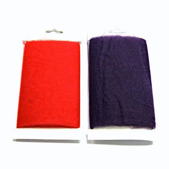 This roll of tulle comes in different colors, including blue, red and navy. The sheer finish showcases a touch of sophistication. This versatile fabric is great for craft projects and clothing.
