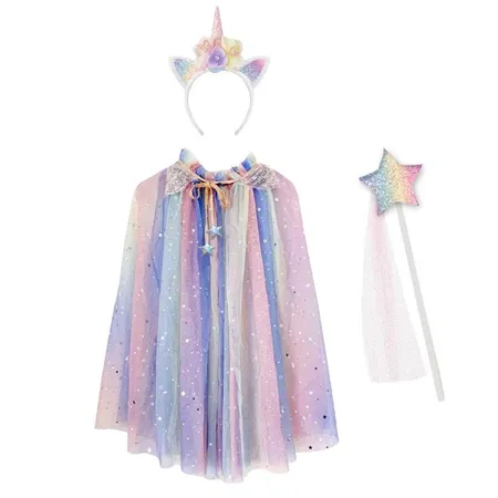 Dress up tulle cape kit including unicorn headband and magic wand