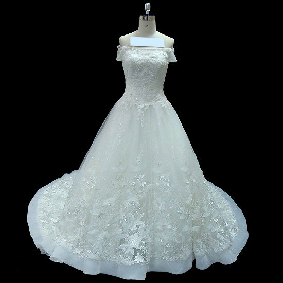 • Bright tulle with exquisite Taiwan lace appliques from the knee position to the hem.