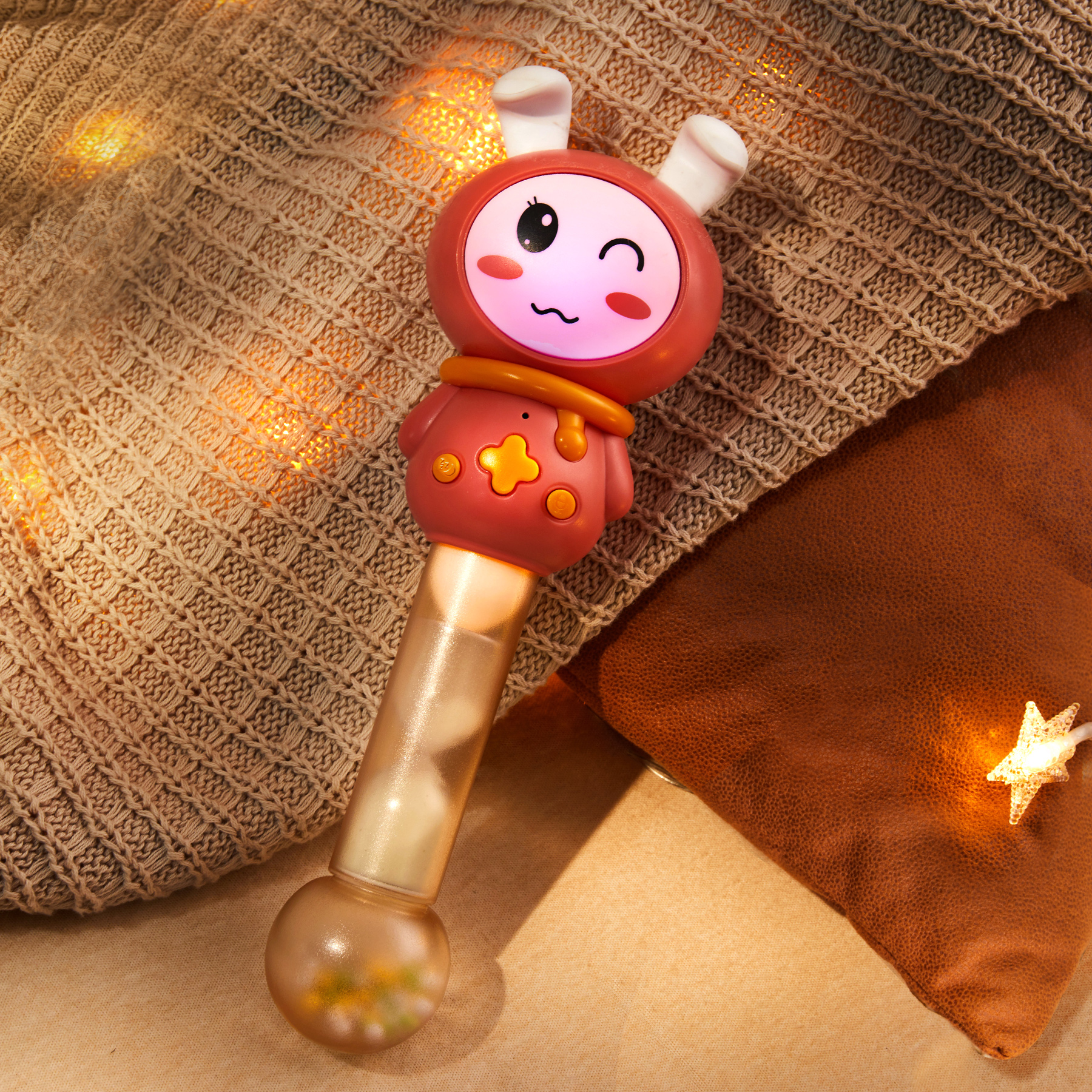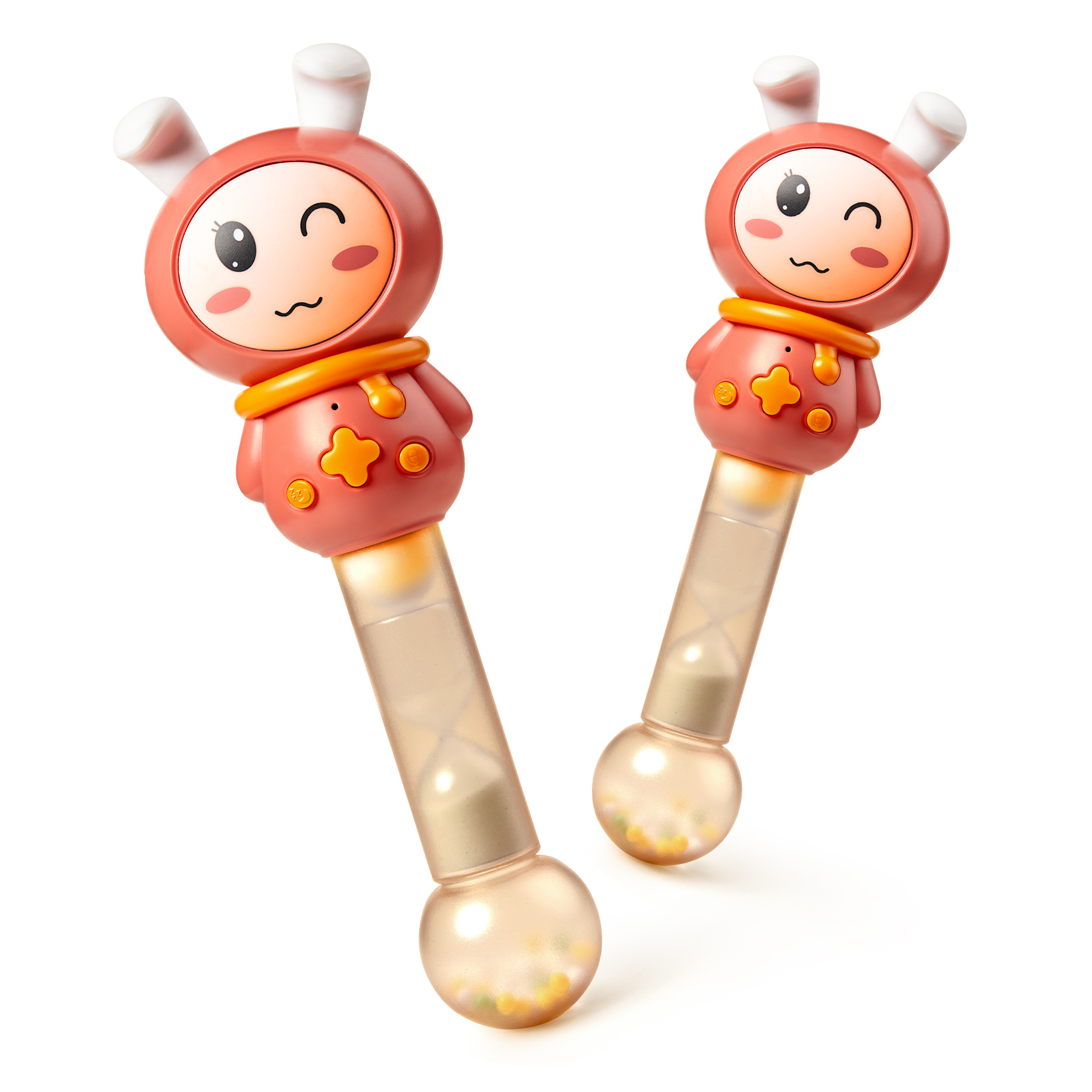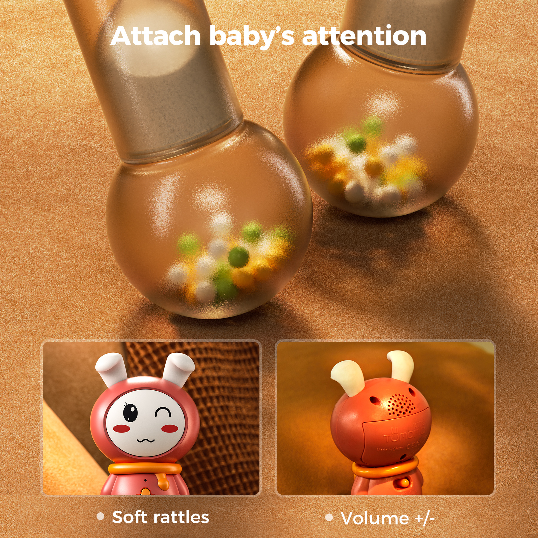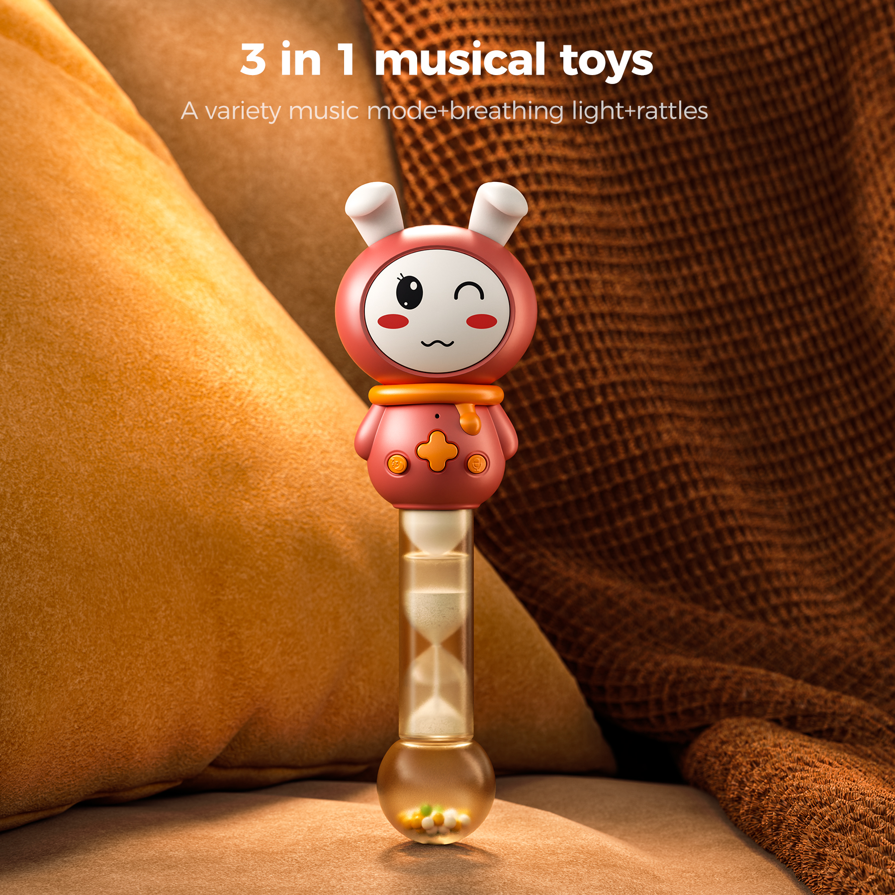 【Baby Learning Toy】Shake to hear the colorful beads rattle and music,rabbit cheeks light up,introduces the concept of cause and effect.Baby music rattle has 11 modes, default, instrument, animal voice, letters and numbers, greeting, family, ring and SMS voice, song, story, sleep mode 1 and sleep mode 2. Babies have fun and encourage them to learn more things,inspirate baby's passion for music.A good way to attract kid's attention,help mom to take a short rest or go to toilet.