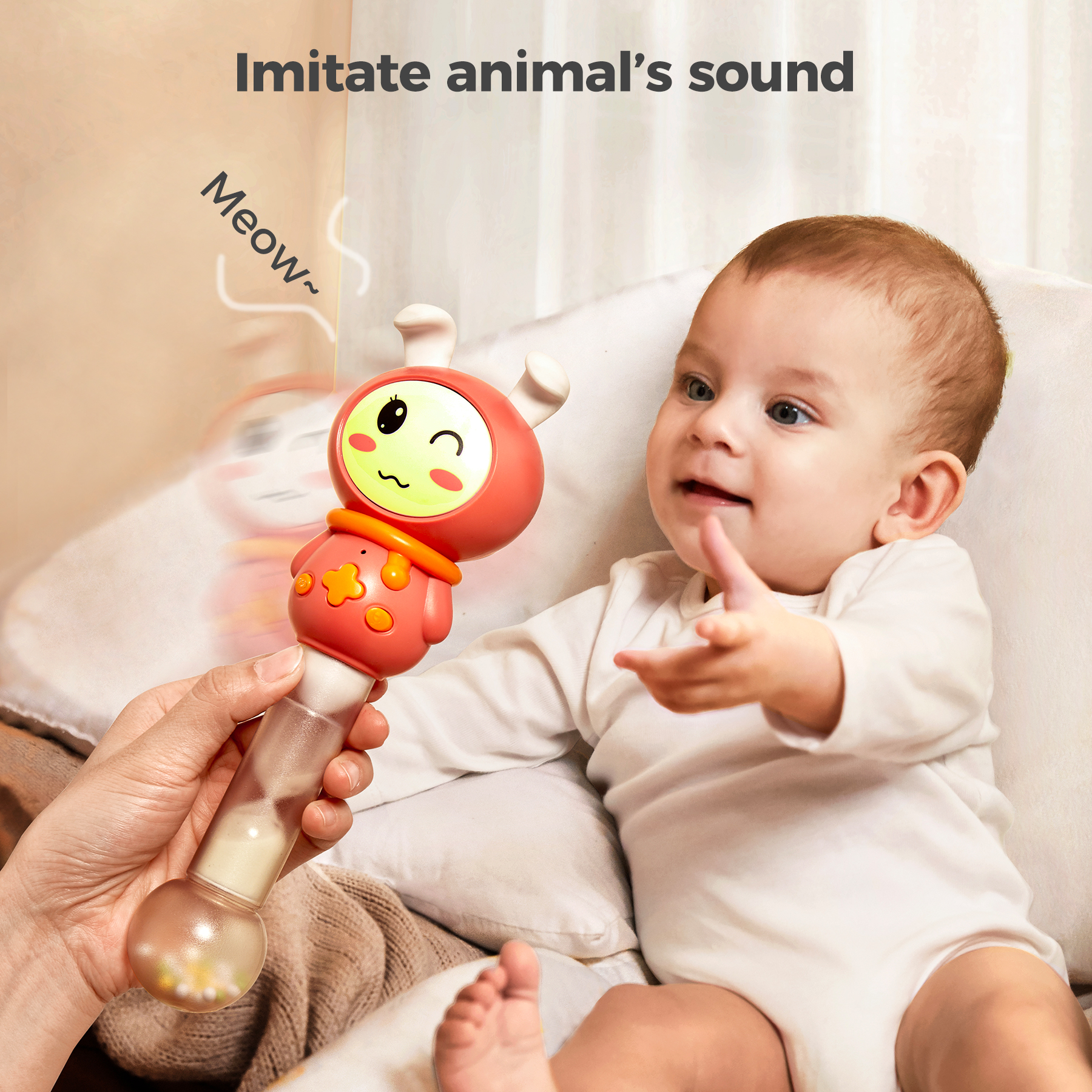 【Animal Rattle Toy for Baby】Easy for little hands to grab and shake,helpful for baby to practice grasping ability,the continuous shaking and gripping motions aid in the development of fine and gross motor skills.