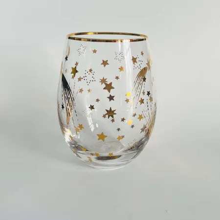 This elegant stemless wine glass with golden decal, will be high-lighting the table setting, for daily use as well in entertainment.
