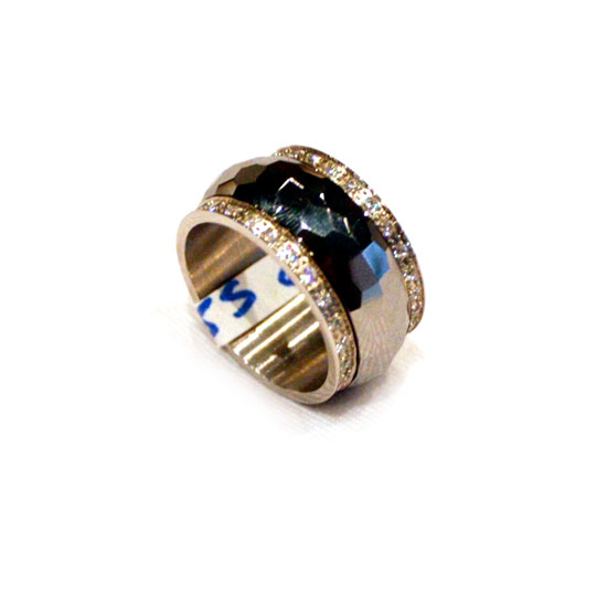 The finger ring features a simple and classical design with a wide band. It is made of tungsten and stainless steel for added sturdiness and durability. This ring is also studded with CZ stones to achieve enhanced appeal.