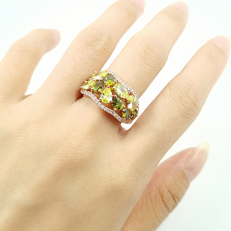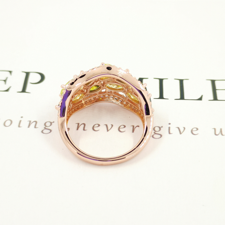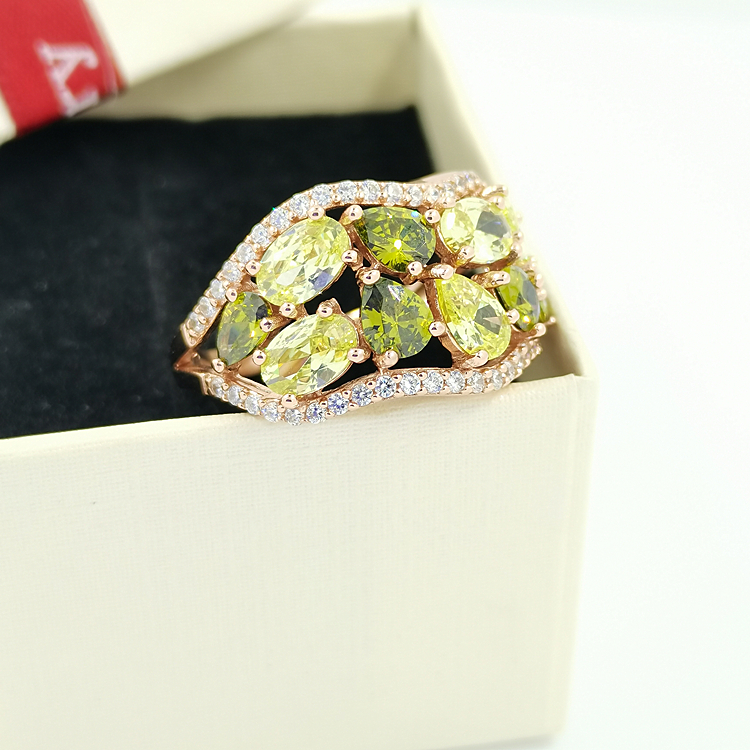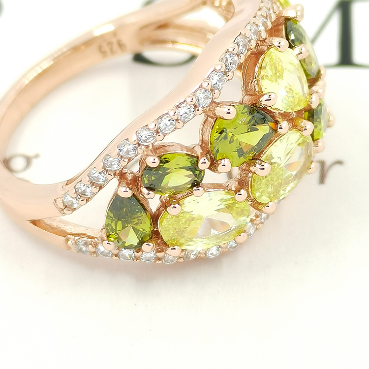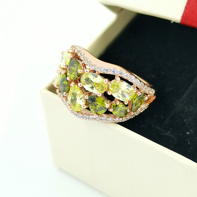 Turkish Style Natural Crystal Silver Green Gemstone Rose Gold 925 Silver Rings
