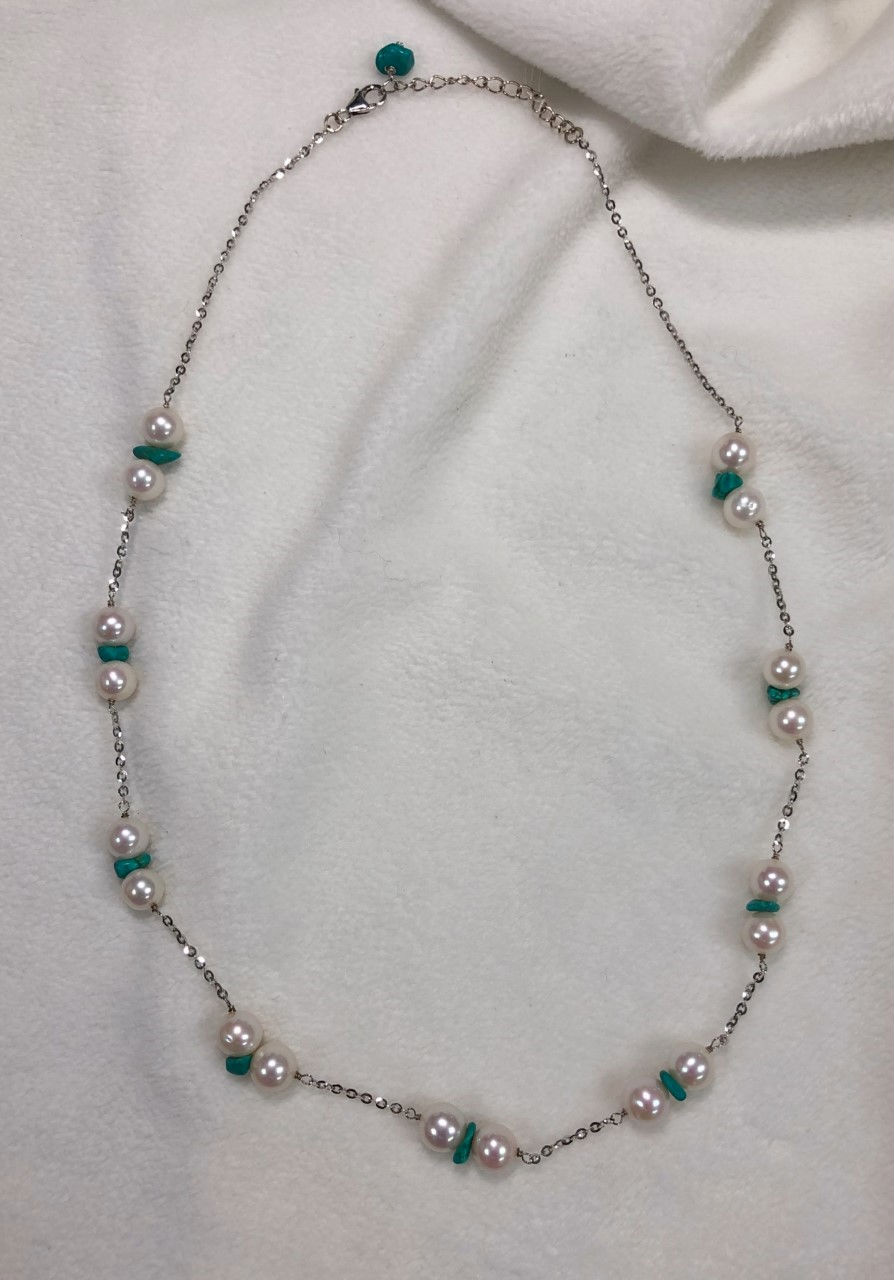 Turquoise + Pearl Silver Necklace