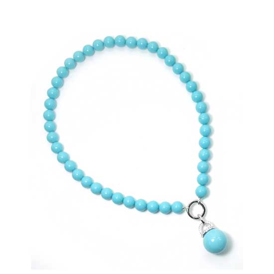 Featured is a necklace made with 925 silver, synthetic turquoise stones and white Cubic Zirconia stones. The necklace is available in a cheerful sky blue, bringing a refreshing vibe to the piece. The fancy design and bold color choice make the necklace a perfect accessory for young ladies.