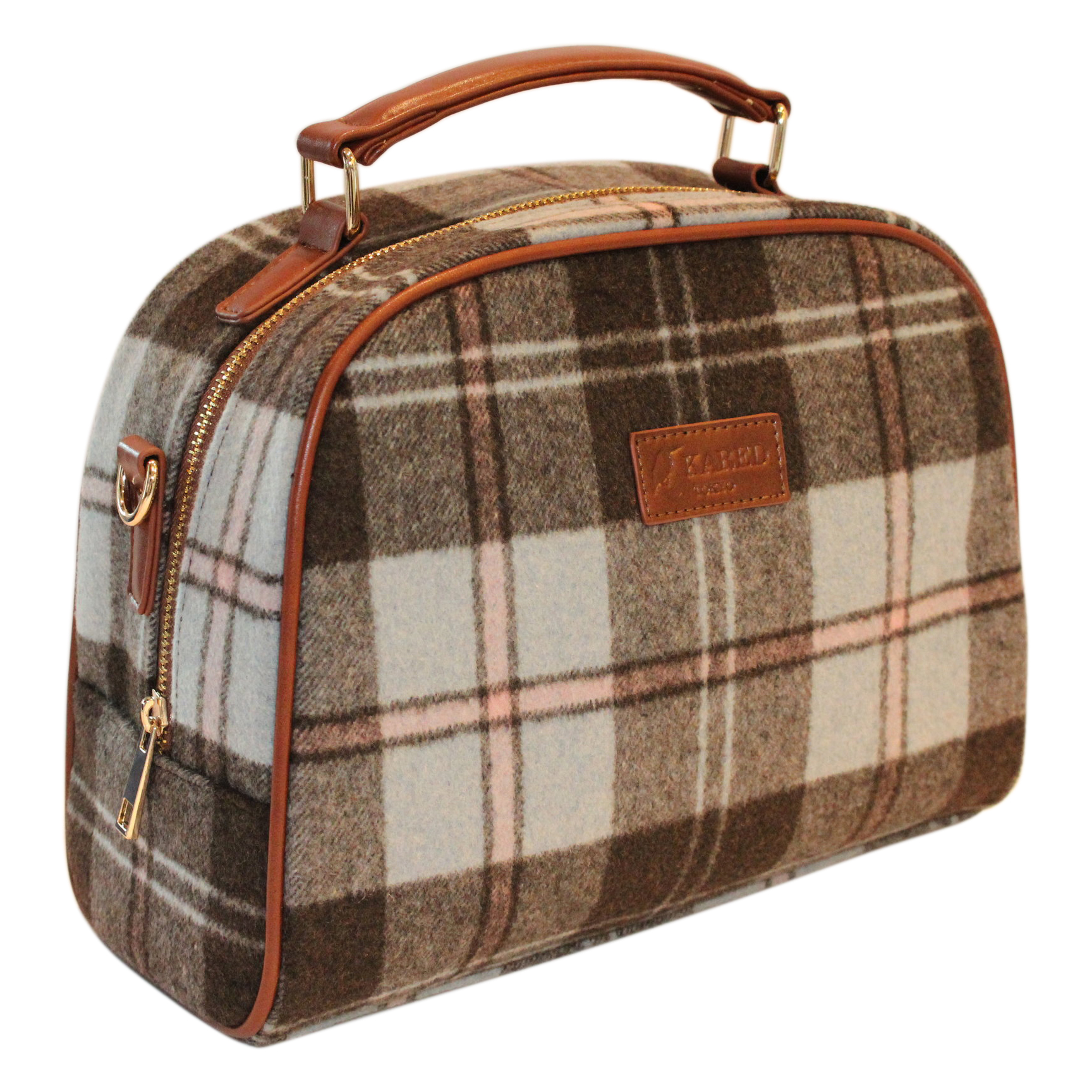 • This is a tweed handle bag which is made by wool fabric, PU and polyester, size 29 x 22 x 14cm