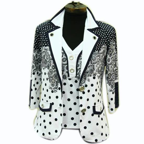 This jacket and tank top set is in elegant black and white colors. The set blends dotted and nostalgic patterns perfectly. Both the jacket and the tank top are made with brilliant handcraft to showcase gorgeous details. The jacket and tank top also look great separately.