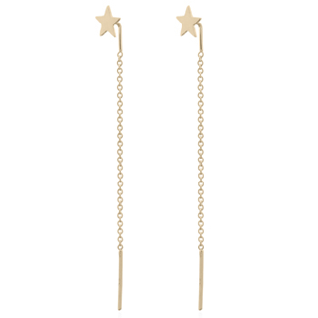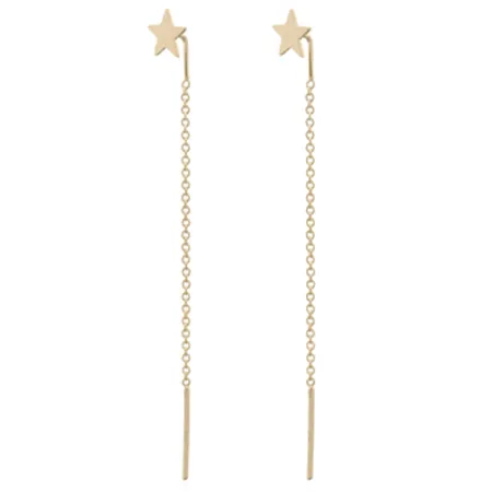 Twinkling Star Yellow Gold Plated Chain Threader Earrings in Silver 925
