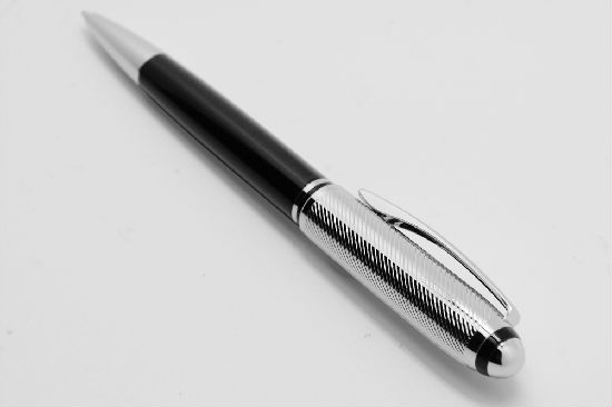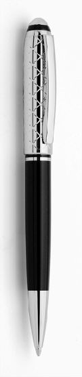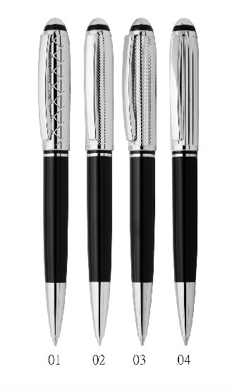 • Twist action ball pen with high tech engraving upper barrel, shiny chrome plated pen parts.