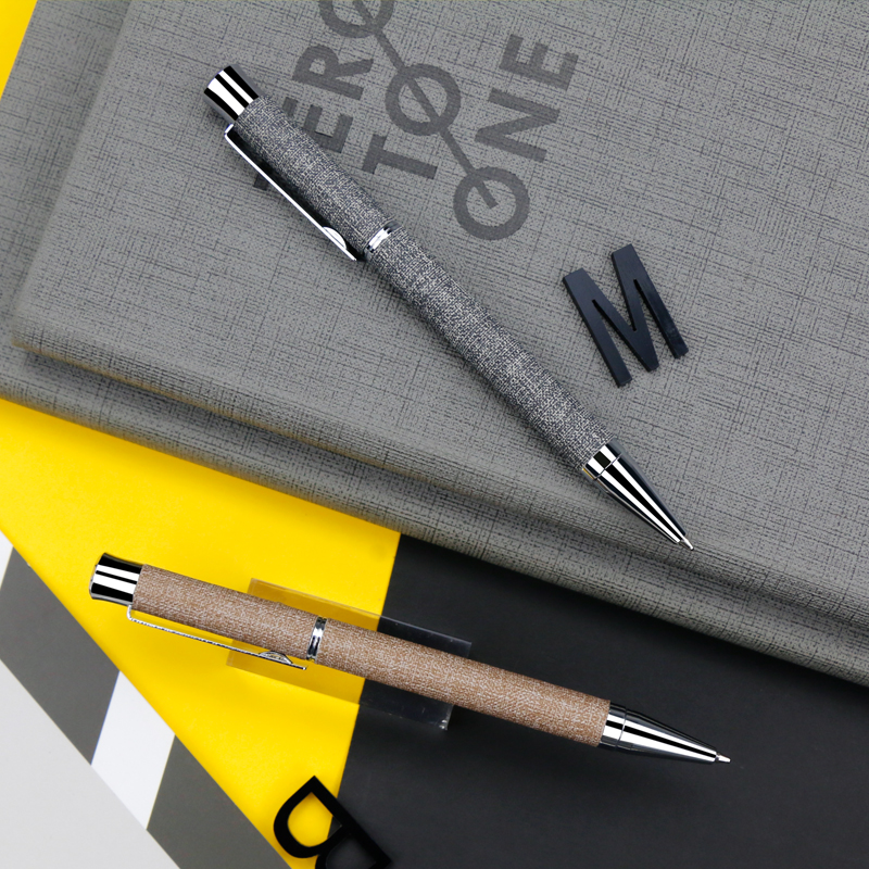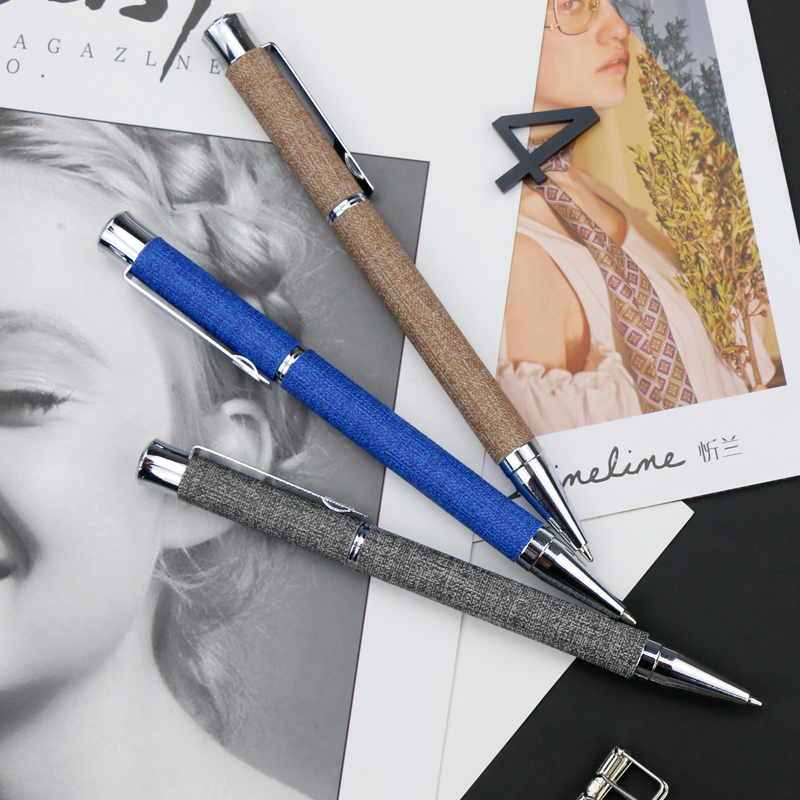 This twist pen has a metal body and is covered with PU on the barrel to ensure a comfortable grip. It has a pocket clip on the side and flaunts a sleek and modern look. The twist ball pen offers a smooth writing experience and is suitable for everyday writing needs.