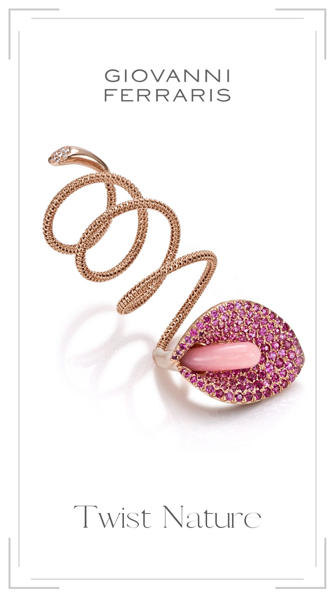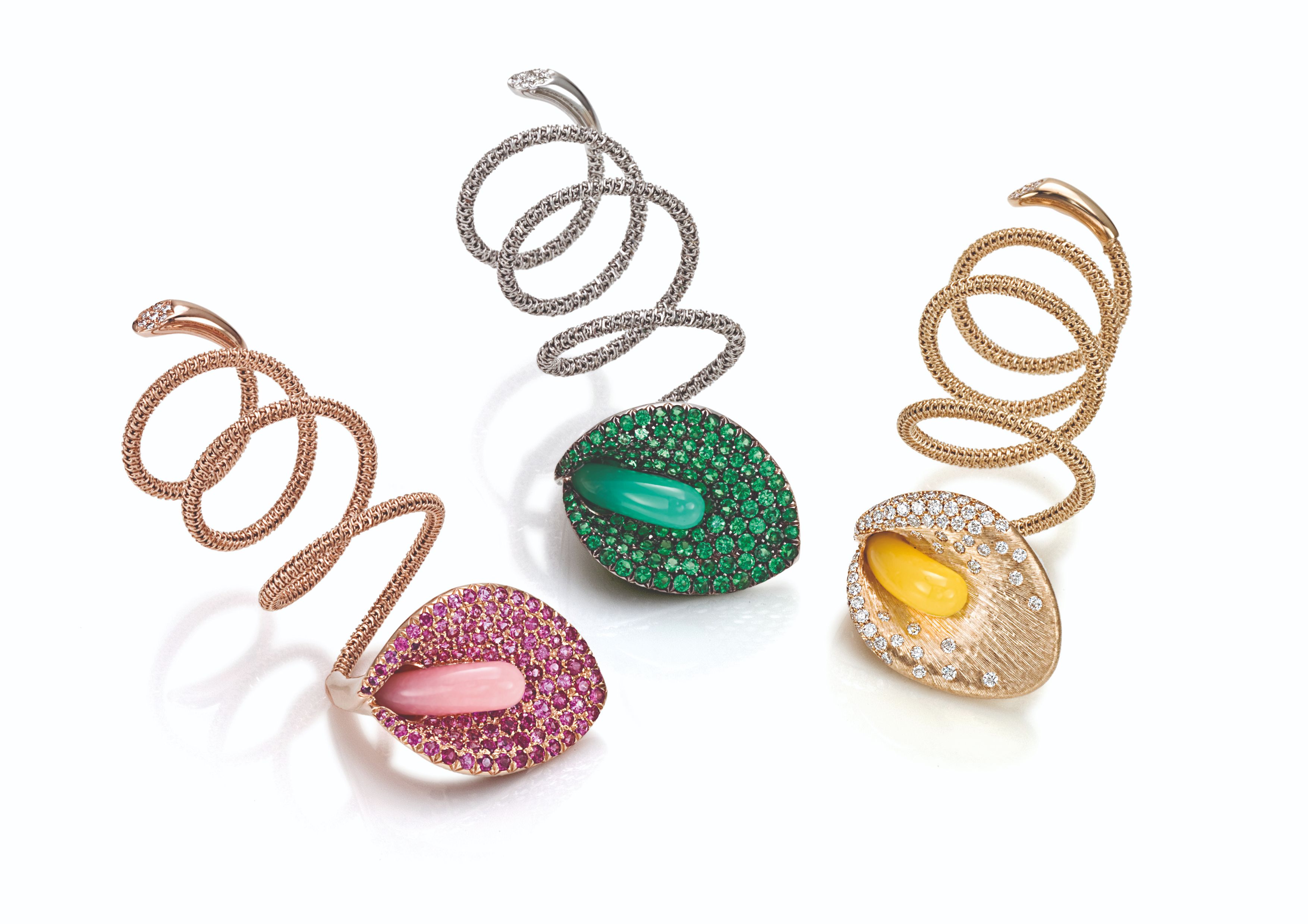 How will you feelwearing the models ofthe line Twist Nature?Romantic or aggressive?Flower or snake?