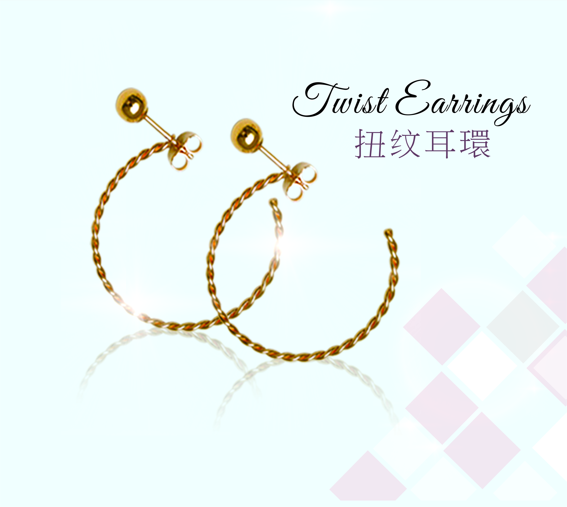 18K Twisted earring (hollow tube series)