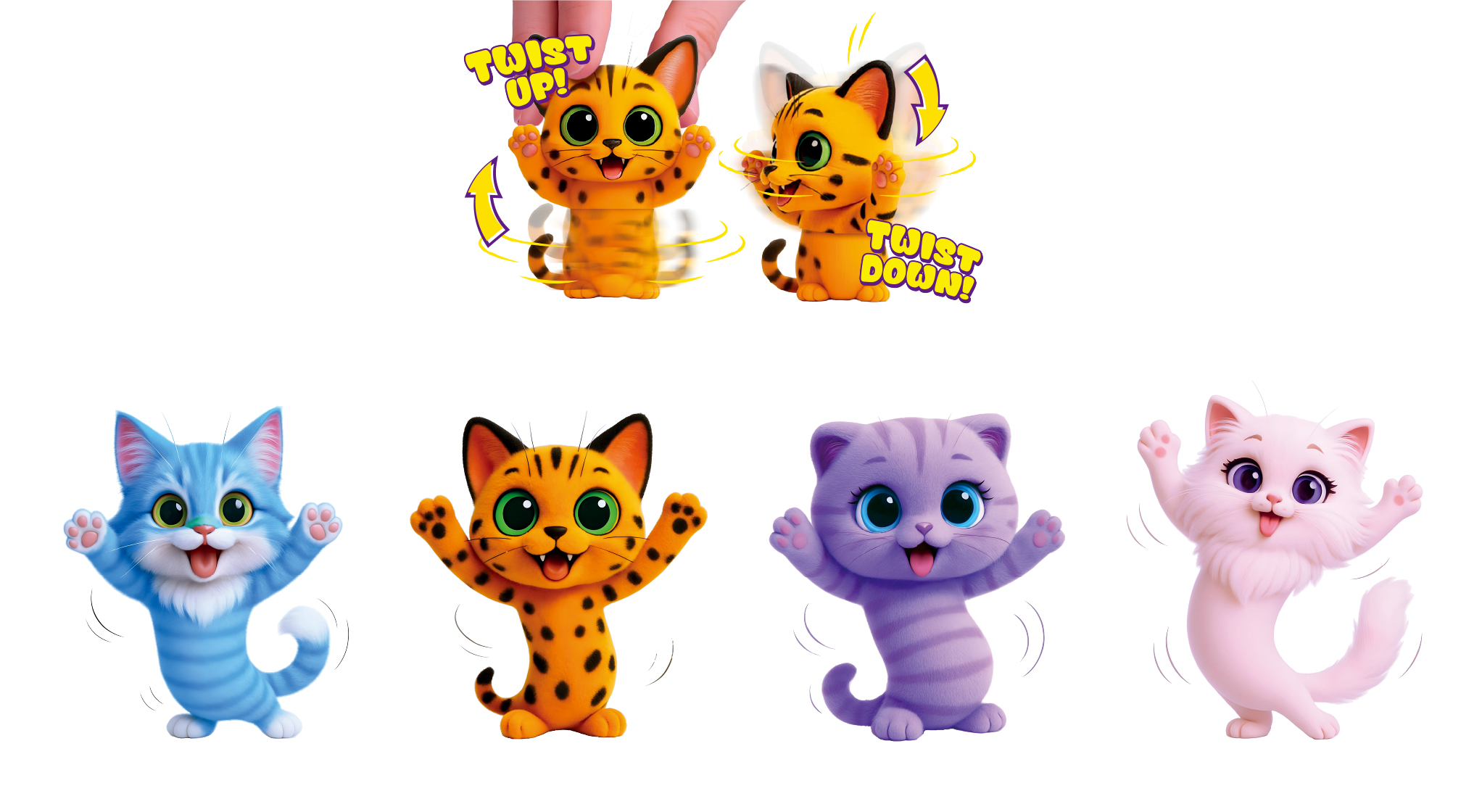 Product Introduction: Lift the cat's head and its body will stretch out. Release the head, and it will twist and shrink back to its original shape.